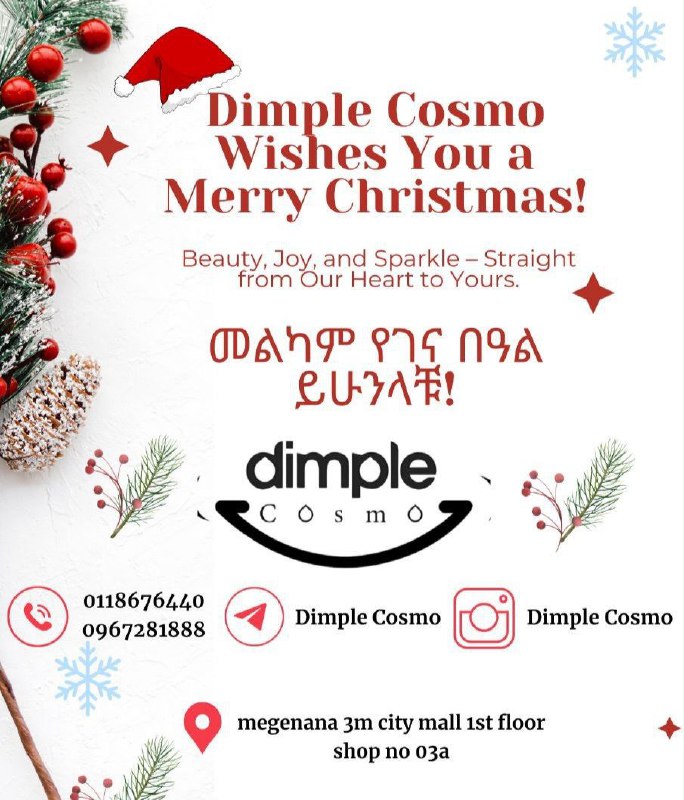 We supply high quality brand personal care items with professional consultation & affordable price. Come visit us #1.Megenagna 3M city mall 1st floor # Gerji Mebrathaile or call us @0118676440 or 0967281888 telegram @dimple_cosmo