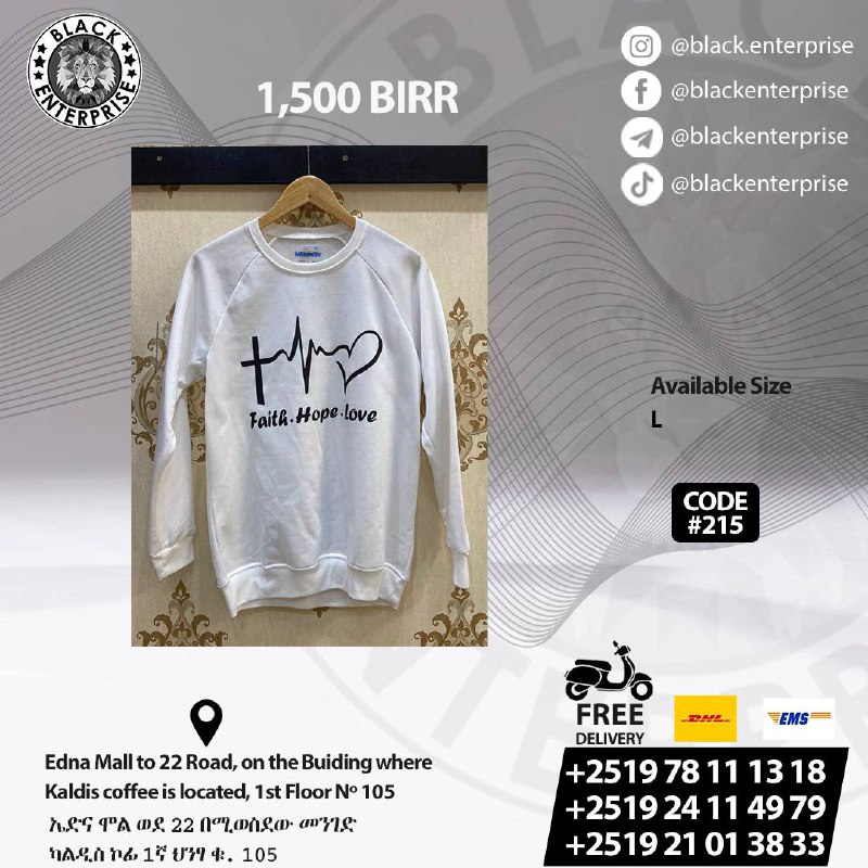 📍 ኤድና ሞል ወደ 22 በሚወሥደው መንገድ ካልዲሥ ኮፊ 1ኛ ህንፃ ቁ. 105